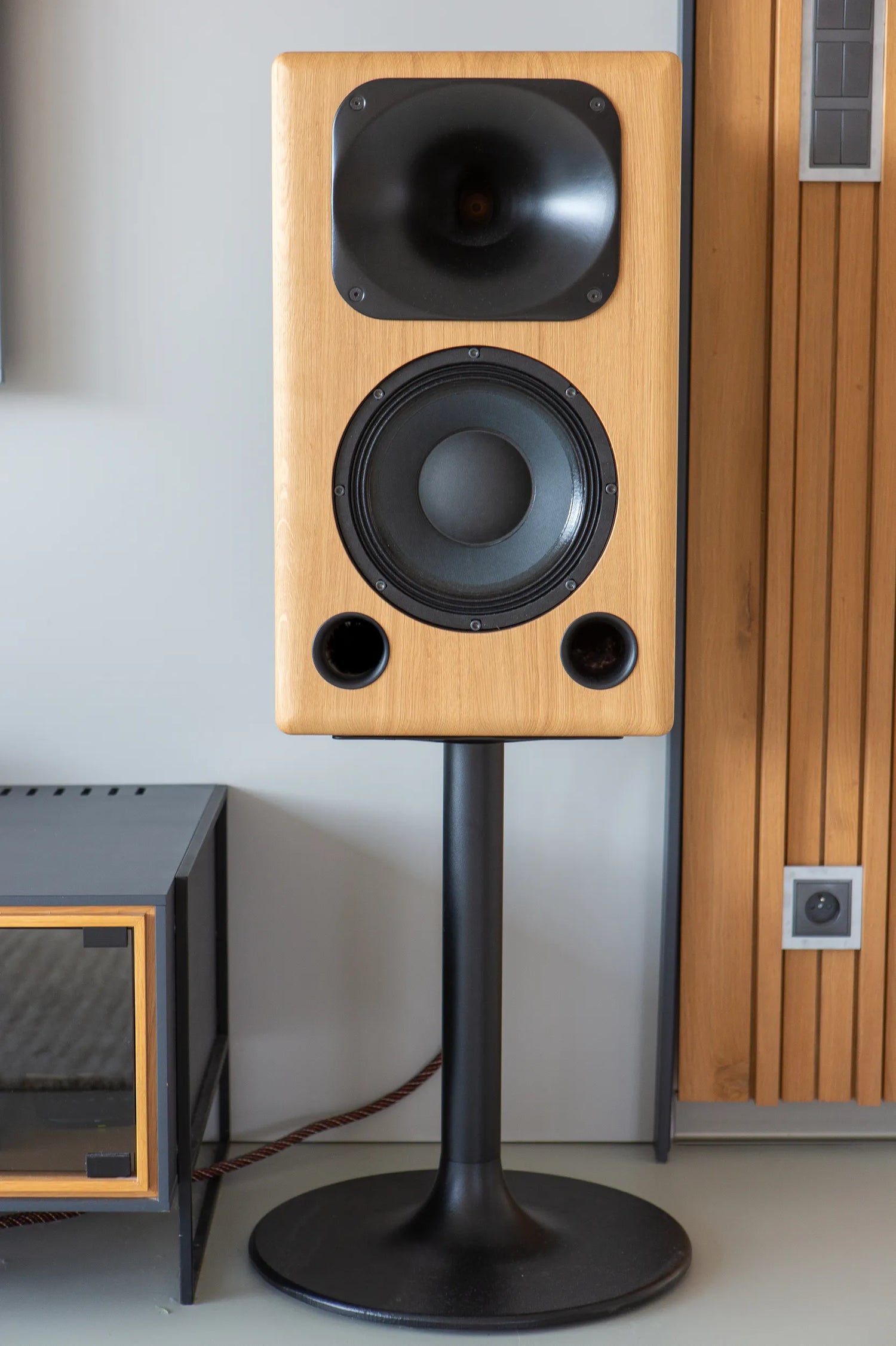 - Position the speakers so that your ear in your listening position is between the midbass driver and the tweeter (choose the height of the stand accordingly).
