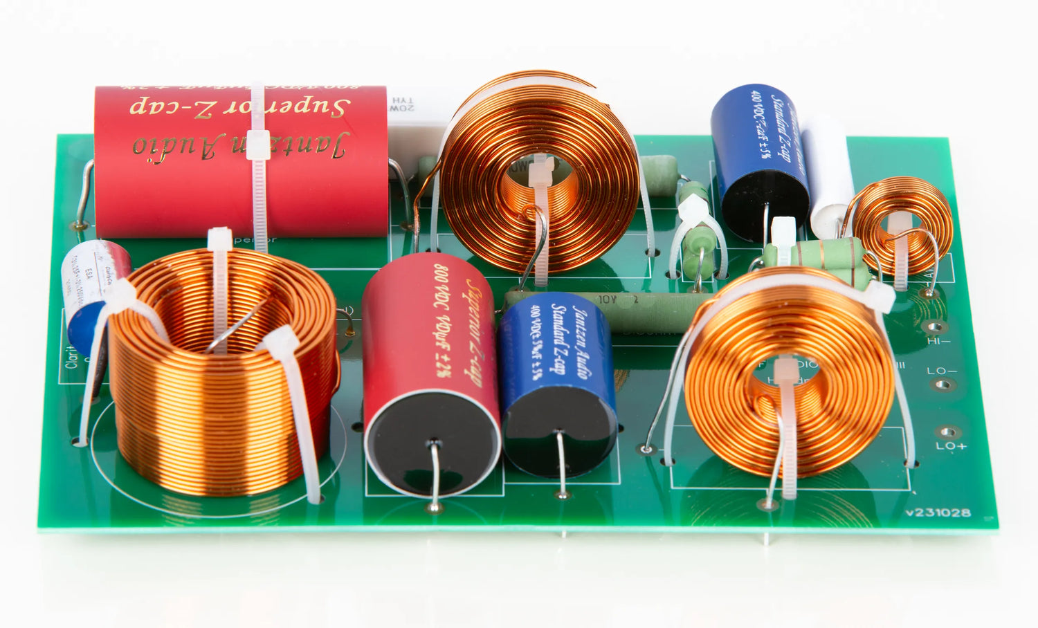 It utilizes premium components from Danish Jantzen Audio (including Superior® capacitors) and UK's Clarity Caps. We use exclusively air-core coils and top of the line Jantzen Audio Superes® resistors.